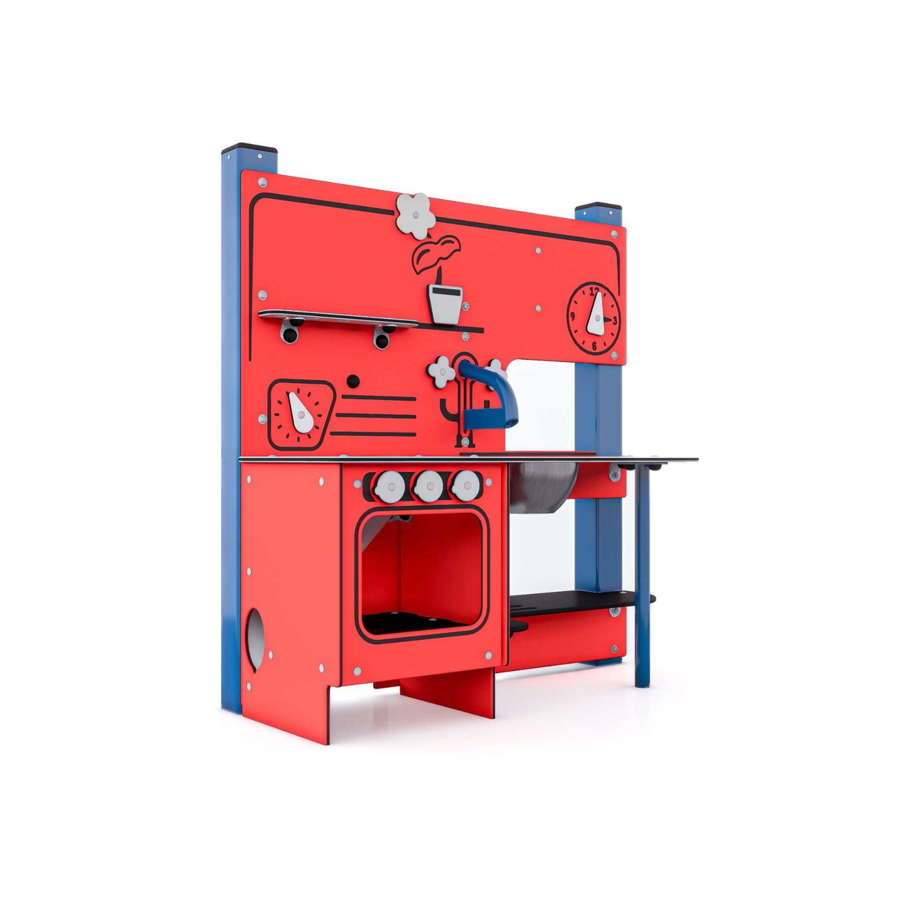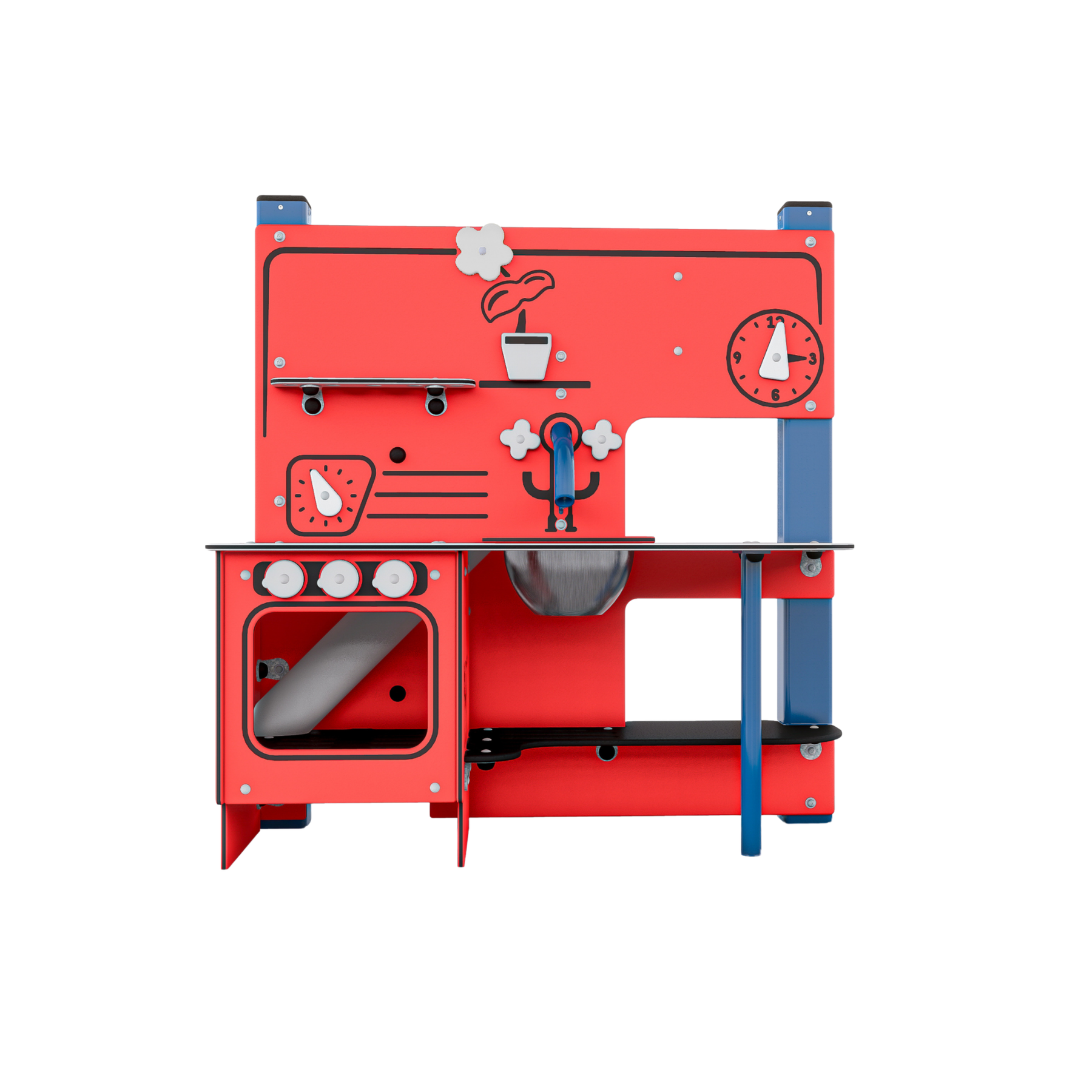 Offrez aux enfants une activité libre et créative! La cuisinette Jambette recrée l’univers des adultes avec une touche ludique et enfantine irrésistible! Comptoir, lavabo, robinet, four, horloge, tube-conduit, décorations, tout y est pour laisser s’épanouir leur créativité, leur imagination, leur socialisation.